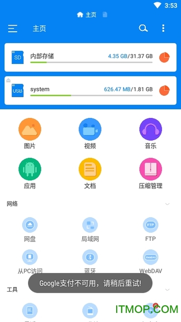 网络文件管理:支持登录Google云端硬盘、连接局域网(SMB)、FTP服务器等多种网络存储方式。您可以在不同网络环境下轻松管理文件,实现跨平台文件共享。