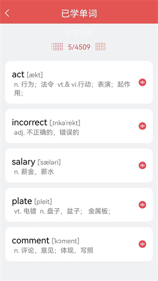1、提供海量的单词词汇库,涵盖从基础到高级的各类词汇,用户可以通过多种互动方式学习单词。每个单词都配有详细的解释、例句和发音示范,帮助用户全面理解单词的用法。系统还会根据用户的学习进度智能推荐适合的词汇,确保学习效果最大化。