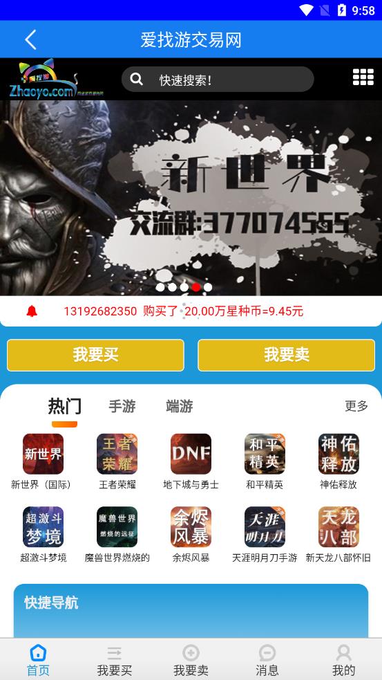 爱找游交易网app是专为深度游戏玩家设计的综合服务平台,不仅提供实时的全类型游戏资讯推送,更搭建了安全可靠的虚拟资产交易通道。平台支持手游、端游、页游等多端游戏账号交易,用户可轻松购买稀有装备、限量皮肤或高等级角色。独创的信用托管系统确保交易资金安全,简洁的UI设计让手机端操作更加直观。无论是想快速提升游戏战力,还是寻找志同道合的队友,这里都能满足你的核心需求。