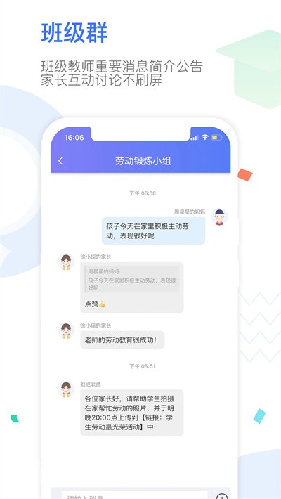 班主任重要新闻发布会公告、家长无需刷屏互动讨论。群内采用结构化信息展示方式,公告类消息置顶显示,日常交流按话题折叠。支持@全员提醒、已读回执、定时发送等专业功能,教师可设置禁言时段保障重要信息传达效果。