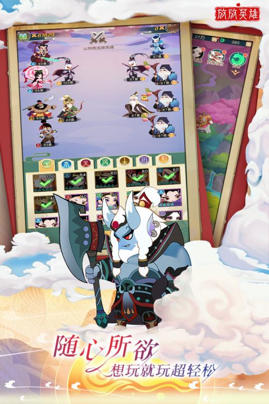 《放放英雄》是一款以中国京剧为灵感的放置养成手游,将国粹艺术与现代游戏玩法完美融合。游戏汇集了京剧中的生旦净末丑等经典角色形象,通过红黑白黄蓝等传统色彩展现独特国风美学。玩家可以在轻松放置的玩法中体验神话冒险,感受传统文化的魅力。无论是角色立绘还是背景音乐,都充满了浓郁的京剧韵味,让玩家在游戏过程中沉浸于中华文化的艺术氛围。