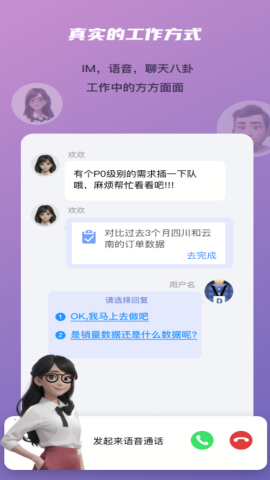 软件的操作界面设计得非常直观友好,新用户只需简单几步就能开始学习之旅。首次使用时,系统会引导你选择想要学习的技能方向和虚拟身份,然后自动为你分配专属的工作台和通讯工具。这些工具完全模拟了真实职场中的办公环境,包括任务管理系统、即时通讯平台和文件共享功能。特别设计的AI上司会通过聊天工具给你下达任务,并根据你的完成情况给予专业指导。整个学习过程就像在真实公司实习一样,让你在不知不觉中掌握职场生存法则。