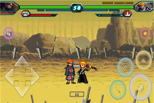 《死神火影》是一款融合了经典动漫元素的格斗游戏,完美还原了《死神》和《火影忍者》中的众多人气角色。游戏采用复古像素画风,无论是场景设计还是角色造型都高度还原动漫原作,为玩家带来沉浸式的战斗体验。在街机风格的3v3车轮战玩法中,玩家可以自由搭配三名角色,通过策略与操作击败对手。每个角色都拥有独特的攻击方式和技能体系,需要玩家深入掌握才能发挥最大战力。游戏不仅重现了动漫中的经典剧情,更通过丰富的格斗系统让玩家感受到热血沸腾的对决乐趣。