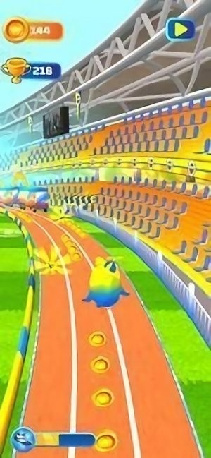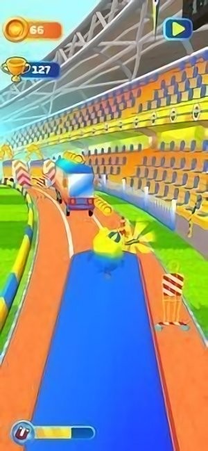 2、玩家需要帮助小黄鸭获得赛跑冠军,同时收集一路上的各种金币等。金币不仅可以解锁新装扮,还能升级角色属性,提升奔跑速度。