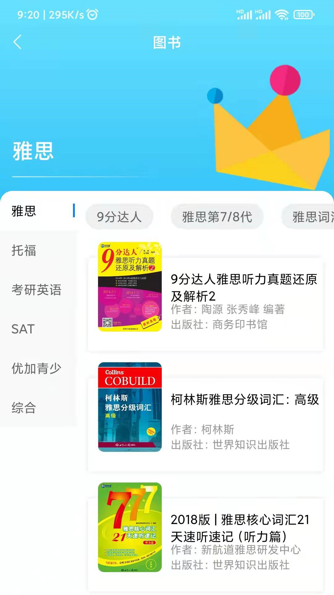 1、图书资源应有尽有:涵盖雅思、托福、SAT等各类考试用书,以及最新最热门的英语学习书籍。只需简单搜索,就能找到你需要的资料,支持在线收听功能,让学习更加高效便捷。资源库持续更新,确保用户能获取最前沿的学习材料。