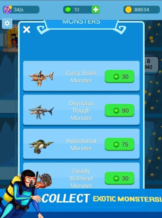 1、游戏提供了丰富的探索玩法,通过深海捕鱼等趣味活动,你可以发现和收集各种全新的海洋怪物物种,每个物种都拥有独特的外形与习性。