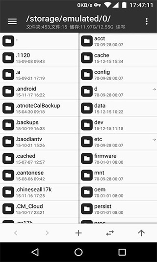 3、底部工具栏提供新建/排序/显示切换等核心功能,在双窗口模式下可跨窗口拖拽文件,配合悬浮按钮实现快捷路径跳转。