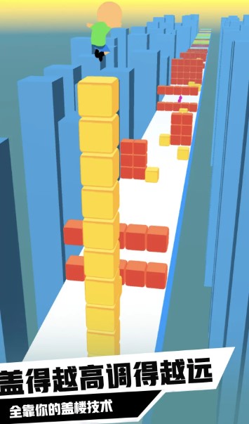 4、随着游戏进程,方块堆叠高度不断增加,稳定性也随之降低,玩家需要精准把控每次跳跃的力度和角度,在高速奔跑中保持完美平衡才能走得更远。