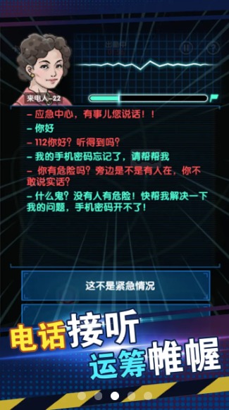 在《有事儿您说话》这款游戏中,你将化身一名电话接线员,肩负起维护社会安定的重任。通过接听各种紧急报案电话,你需要迅速判断情况并做出合理调度,指导求助者化解危机。游戏以真实事件为背景,让玩家体验紧张刺激的救援过程,每一个决定都可能改变他人的命运。只需一部手机,你就能成为守护城市的无名英雄,用智慧和冷静应对突发状况。