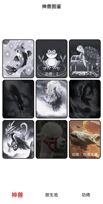 1、可以从我们的异世界当中召唤更多的神兽放生神兽,得到的功德会更高。这些神兽不仅外形独特,还拥有特殊能力,比如麒麟可以带来双倍功德,凤凰可以缩短召唤冷却时间。收集各种神兽也是游戏的一大乐趣。