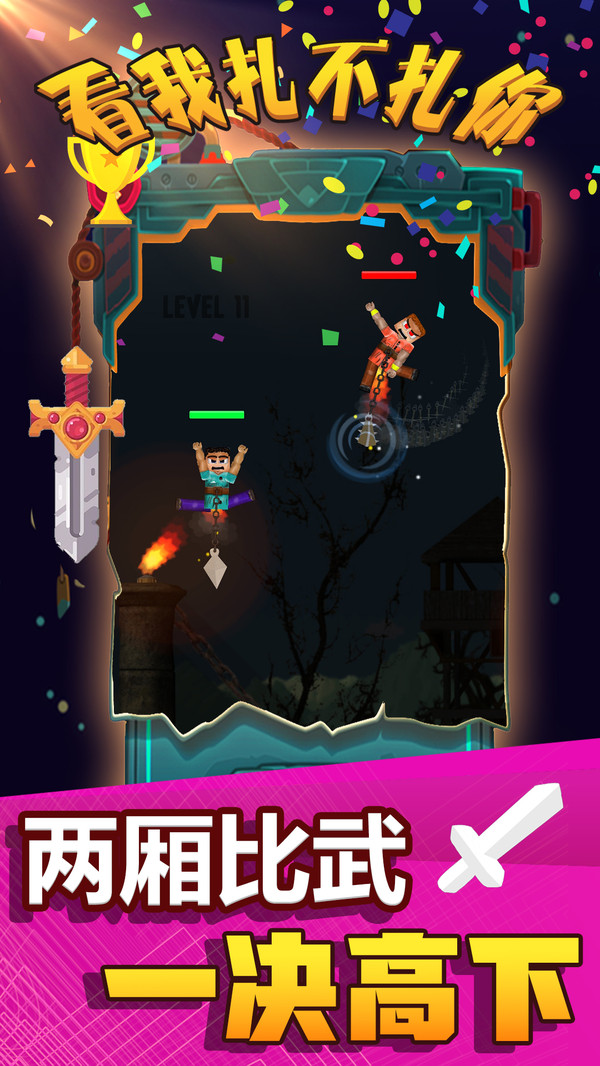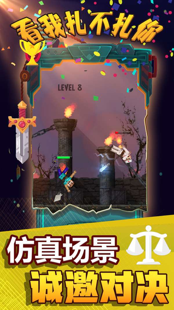 《看我扎不扎你》是一款以武侠切磋为核心的对抗类游戏,玩家将置身于精心设计的仿真场景中,体验真实的武艺对决。游戏提供了丰富的剧情模式和自由对战模式,玩家可以根据系统提示选择合适的武器,并通过抡圆武器、利用惯性等技巧扩大攻击范围和伤害力度。游戏中的物理引擎模拟真实战斗效果,让每一次挥剑、每一次格挡都充满力量感。无论是新手还是老玩家,都能在这里找到属于自己的战斗节奏,享受一场酣畅淋漓的武林争霸。