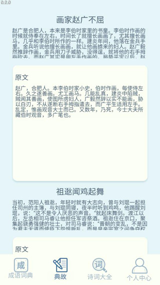 2、典故:收录的每条历史典故都经过专家考据,包含人物关系图和时间轴展示。如"卧薪尝胆"会动态呈现勾践复国全过程,配合3D重建的会稽山场景,让用户获得博物馆级的文化体验。