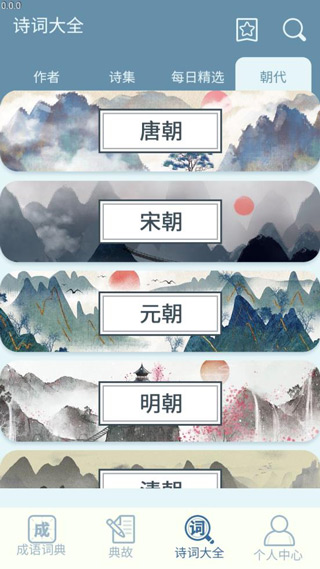 1、打开软件后,在古色古香的主页滑动"诗词江湖"卷轴,点击鎏金边框的"诗词大全"入口。检索系统支持语音输入,说出"想找杜甫的七言律诗"即可智能定位,搜索结果会按《全唐诗》目录结构分层展示。