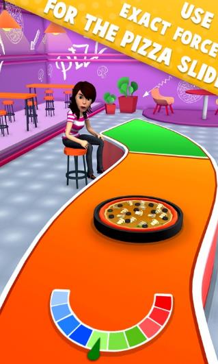 1.画面十分简洁,美味的披萨会吸引来许多的顾客前来品尝。游戏采用卡通风格的画面设计,色彩鲜艳明快,各种披萨配料看起来十分诱人。随着店铺升级,场景也会变得更加精致华丽。