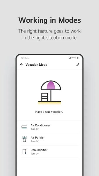 只需下载LG ThinQ APP或使用语音指令,即可将所有家电设备整合到一个平台上,实现统一管理。无论是开关设备还是调节设置,都能通过简单的操作完成,让您的居家生活更加轻松高效。此外,APP还支持多设备联动,一键触发多个家电的协同工作。