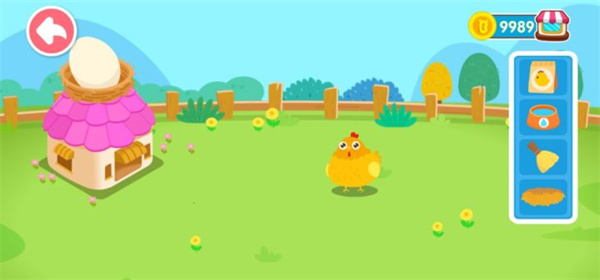 除了种植蔬菜,这里还有小鸡需要我们照料,给它喂吃的、喝水、打扫等等,这一些列做完之后小鸡就会下蛋;