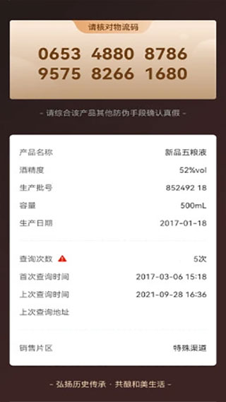用户进入验证界面后,系统会智能识别16位或22位两种格式的防伪码,自动过滤无效字符。刮开酒瓶标签银色涂层的操作区域经过特殊处理,确保刮擦时不会损坏底层编码。验证过程中,app会同步记录设备信息和地理位置,形成完整的防伪溯源档案。查询结果页面不仅显示真伪状态,还会展示该产品的生产批次、出厂日期等详细信息,让消费者买得放心。