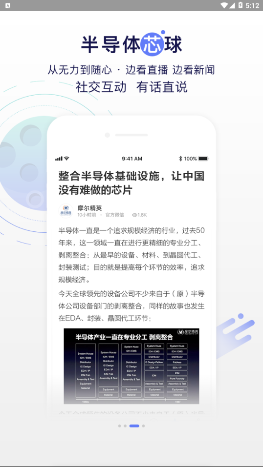 摩尔芯球app是专为IC行业从业者和爱好者打造的知识共享与职业发展平台。无论你是刚入行的新人还是资深工程师,这里都能满足你的学习与求职需求。平台汇聚了半导体行业前沿资讯、技术干货和招聘资源,通过直播宣讲、大咖专栏、在线课程等多元形式,帮助用户高效获取行业知识、拓展职业机会。独特的"私人订制"功能可根据个人需求智能推荐内容,让学习更精准。在这个信息爆炸的时代,摩尔芯球为你筛选最有价值的半导体行业内容,助你在职业道路上快人一步。