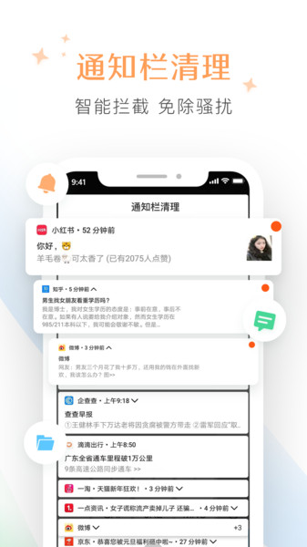 通知栏管理:帮助您管理各类应用的通知推送,屏蔽烦人的广告和冗余信息,让通知栏更加整洁清爽。