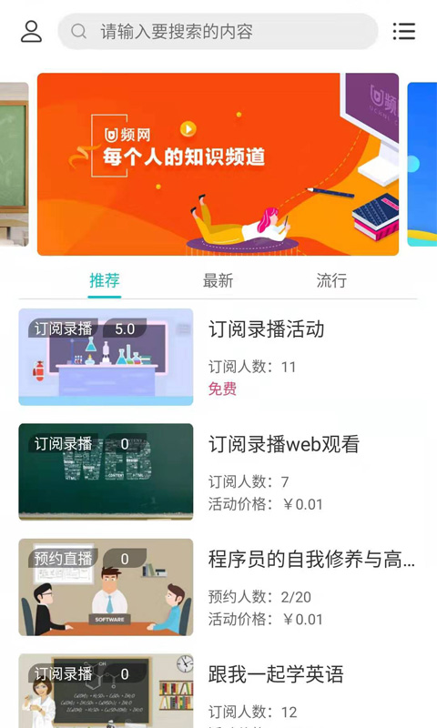 U频网是一个面向所有人的知识沟通平台,为每个人提供通向知识世界的频道。知识提供者可以通过本平台提供直播和录播的课程,分享专业见解与经验;知识接受者可以通过预约和订阅的方式得到自己想学的知识,构建专属学习计划。平台采用智能推荐算法,根据用户兴趣精准匹配内容,同时支持多端同步学习,让知识获取更加智能化、个性化。