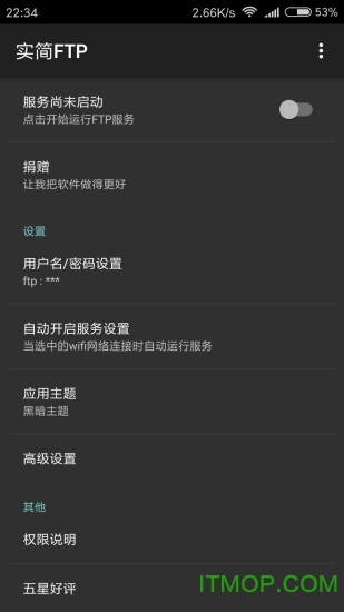 实简FTPapp是一款专为Android手机用户设计的实用工具类应用,它能够帮助用户在手机上快速搭建一个安全可靠的FTP服务器。通过这款应用,您可以将手机变身为一个小型文件服务器,让其他设备(如电脑、平板或其他手机)轻松访问您手机中的各类文件。无论是照片、视频、音乐还是文档,都可以通过FTP协议实现快速传输和共享。