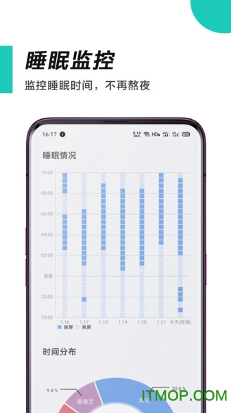 边走边看功能会记录您移动中使用手机的时间,并贴心地提醒您注意交通安全。呆呆的看模式专门统计静止状态下使用手机的时长,帮助您改掉"沙发土豆"的习惯。第一次拿起功能通过对比日出时间,分析您晨间使用手机的规律,为调整作息提供科学依据。