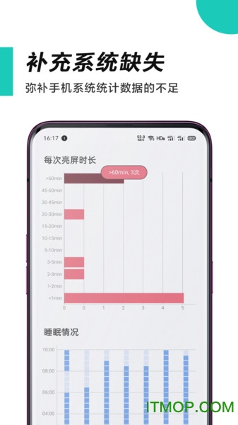 最后一次放下手机功能精确记录您每日就寝时间,长期数据积累可以反映作息规律变化。每日屏幕使用时间限制功能会在接近设定阈值时发出提醒,这个智能预警系统能有效防止过度使用手机。所有数据都会生成周报和月报,方便您进行长期的时间管理规划。