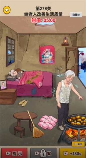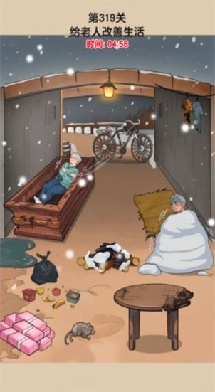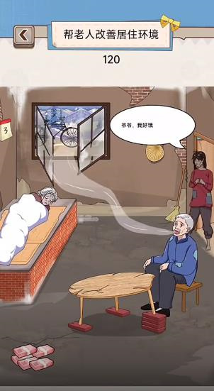 《看望老人》为玩家带来前所未有的解谜体验。与传统找茬游戏不同,本作将重点放在人文关怀与创意解谜的结合上。游戏中,你会遇到一位在寒风中瑟瑟发抖的孤寡老人,他生活简朴却舍不得为自己花钱。玩家需要通过观察老人的生活环境,找出需要改善的地方,并合理分配有限的金币来帮助老人。从修补漏风的门窗到照顾陪伴老人的小狗,每个细节都蕴含着温暖人心的故事。游戏通过细腻的场景刻画和感人的剧情,让玩家在解谜的同时感受到助人为乐的快乐。