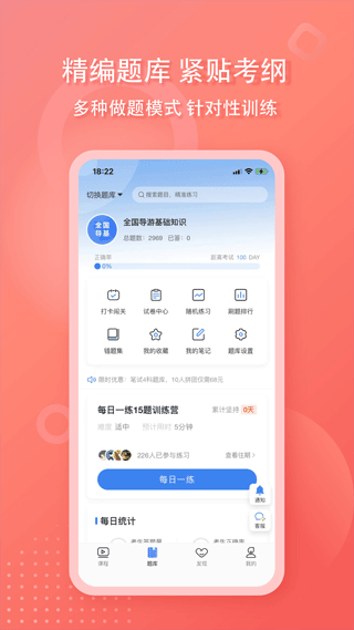 章节练习、随机练习及每日打开,满足不同刷题习惯。同时可定义出题方式,按需刷题。