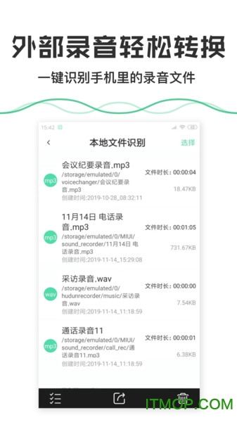 支持批量导入手机本地录音文件,自动转换为可编辑文字内容,转换速度快,准确度高,转换后的文字可导出为多种格式,方便后续整理使用。