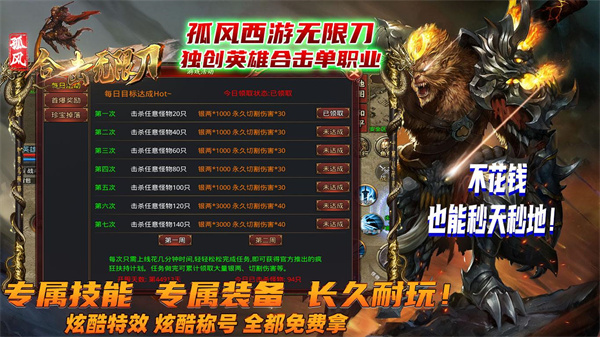 孤风合击无限刀完美融合了经典与创新,既保留了传奇游戏的核心乐趣,又加入了诸多现代化设计。游戏平衡性出色,无论是休闲玩家还是硬核玩家都能找到适合自己的玩法。超高的爆装率和丰富的装备系统让收集爱好者欲罢不能,而激烈的PVP玩法则能满足竞技玩家的需求。游戏画面精美,特效炫酷,操作手感流畅,整体体验远超同类产品。最重要的是,游戏坚持公平公正的原则,所有道具装备都可以通过游戏内途径获得,真正做到了零氪也能玩得爽快。如果你正在寻找一款耐玩又有情怀的传奇手游,孤风合击无限刀绝对是最佳选择!