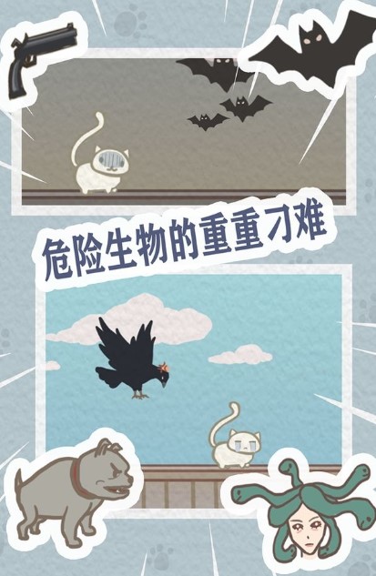 游戏最大的亮点在于其天马行空的关卡设计,每个谜题都充满意想不到的脑洞,既能带来解谜的成就感,又能让人会心一笑。玩家将面对层出不穷的危机场景,从滚烫的厨房到摇晃的甲板,每个障碍都需要你快速思考解决方案。游戏强调选择的重要性,每个决定都会影响后续剧情发展,甚至改变猫咪的命运轨迹。简单易上手的操作配合深度策略玩法,让不同年龄段的玩家都能找到属于自己的乐趣。