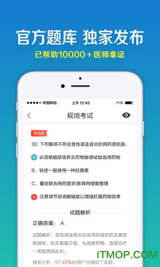98%规培医生使用。凭借优质内容和良好体验,获得广大医学生和规培医师的一致推荐。用户满意度高,是备考群体中最受欢迎的学习工具之一。