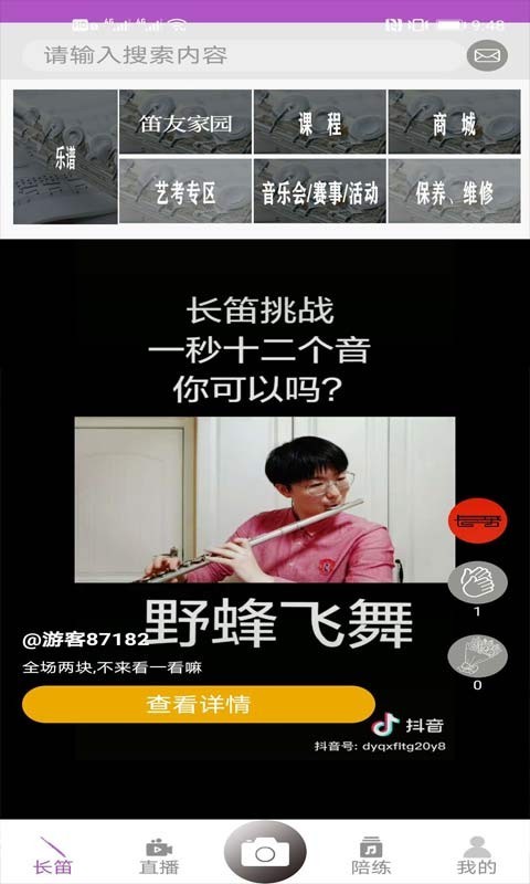 2、互动学习社区:支持用户在线学习各类长笛课程,分享自己的演奏作品,参与直播教学课程,与专业老师实时互动交流。