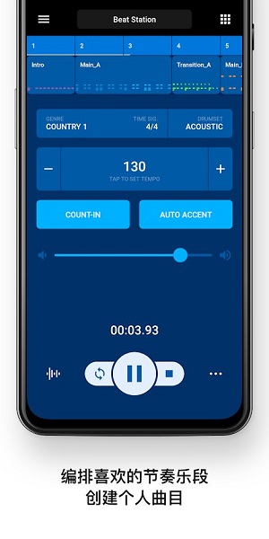 在这个模式下,你可以根据演奏需求,将多个节奏型中的乐段编排成完整的音乐作品。系统会自动播放你编排好的节奏序列,让你可以专注于其他乐器的演奏。这个功能非常适合需要复杂节奏变化的音乐创作,大大提升了音乐制作的效率。