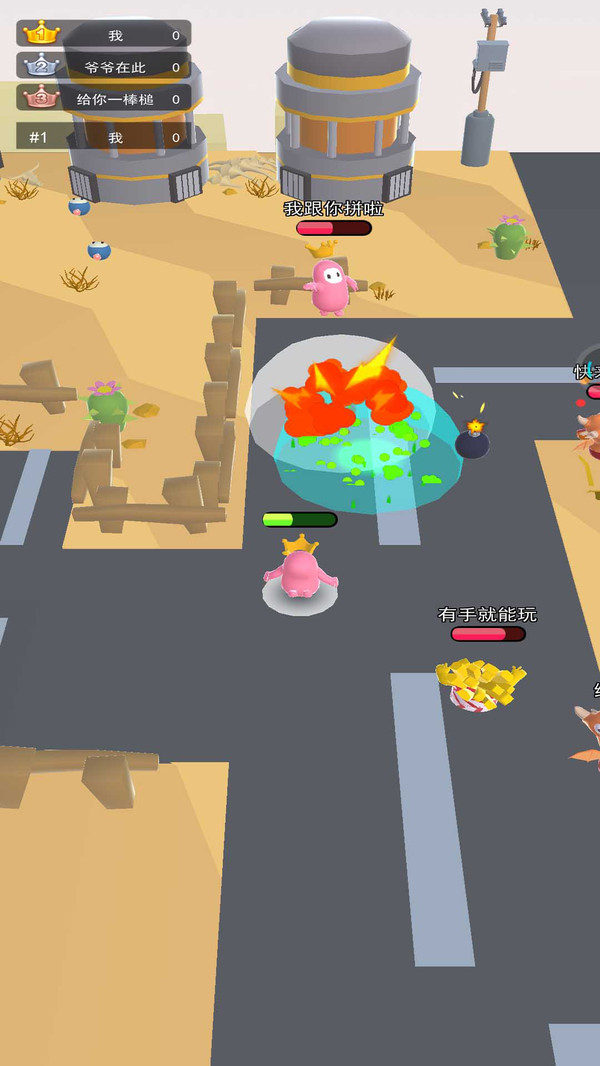 樱花破坏者是一款充满趣味性的乱斗式游戏,游戏节奏紧张刺激,玩法丰富多样。玩家需要灵活操控自己的角色,在校园各个场景中收集炸弹等武器道具,并将它们精准地投掷到敌人周围或身上。需要注意的是,炸弹在爆炸前必须及时扔出,否则可能会误伤自己。同时还要时刻警惕敌人的攻击,保持敏捷的移动和闪避。游戏采用晋级制玩法,玩家需要不断消灭一波又一波的敌人才能最终赢得冠军。面对数量众多的敌人,你能否凭借出色的操作和策略全部战胜他们呢?