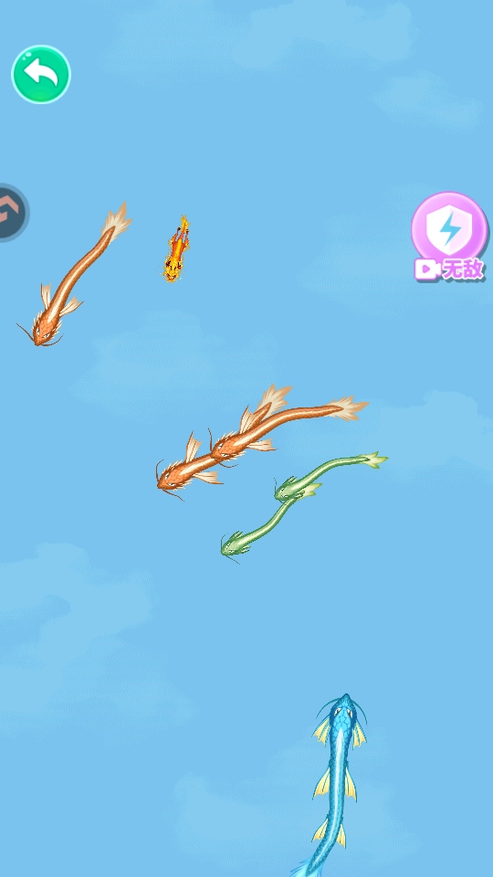 进入游戏后点击开始按钮即可开启你的合成之旅。游戏提供了详细的新手引导,帮助玩家快速掌握基本操作要领。在游戏过程中,玩家需要灵活控制角色移动,通过吞噬比自己等级低的生物来获得成长。随着不断合成进化,角色的体型会逐渐变大,外观也会发生明显变化。当成功进化为黑龙形态时,将获得更强大的攻击力和移动速度。如果不幸在游戏中失败,玩家可以选择观看广告来获得复活机会,继续挑战更高难度的合成目标。