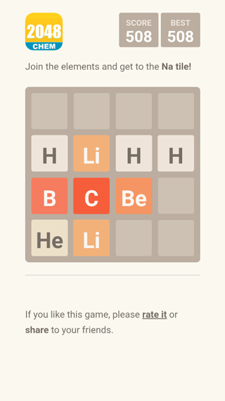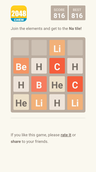 虽然2048化学版是基于经典2048玩法的改编版本,但它完美融入了化学元素周期表的特色,为玩家带来了全新的游戏体验。游戏中所有方块都变成了化学元素,玩家需要通过合并相同元素来获得更高原子序数的元素,最终目标是合成原子序数为2048的元素。这款游戏不仅保留了原版2048的趣味性和挑战性,还巧妙地将化学知识融入其中,让玩家在享受游戏乐趣的同时,不知不觉地加深对元素周期表的理解和记忆。无论你是化学爱好者还是游戏达人,这款游戏都值得一试!