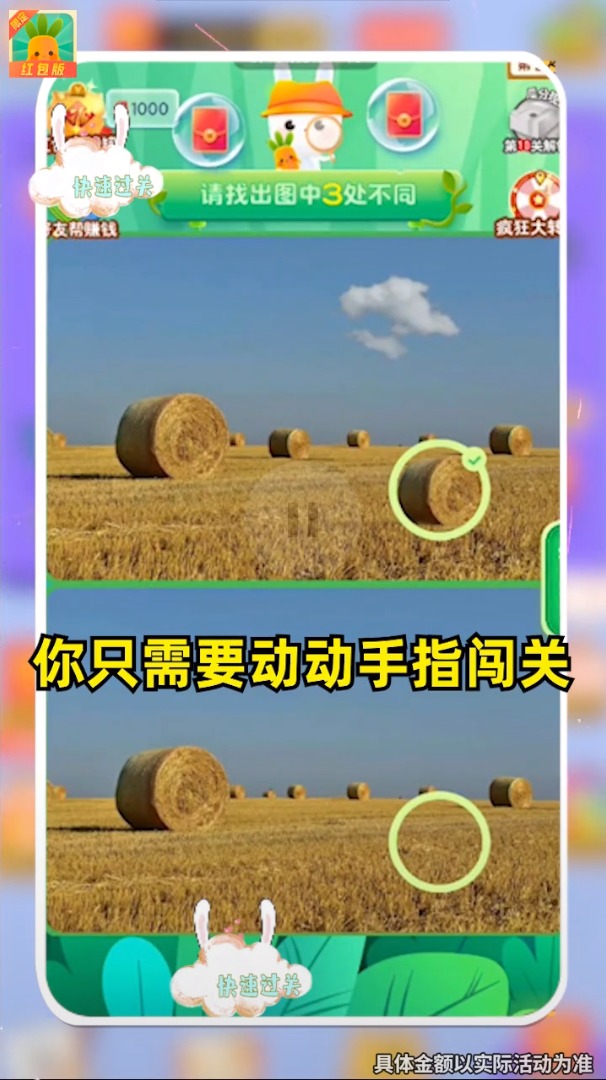 还在玩那些虚假的赚钱游戏吗?找茬大侦探让你边玩游戏边赚零花钱,真实可靠!这款游戏不仅能带来娱乐体验,还能让你轻松赚取额外收入,这么好的机会可不要错过。使用这款app赚钱就是这么简单,0.3元起即可提现,操作便捷无门槛。无需绑定银行卡,下载就能领取红包奖励,收益直接提现到账,这样的好事你还在等什么?快来加入找茬大侦探,开启你的赚钱之旅吧!