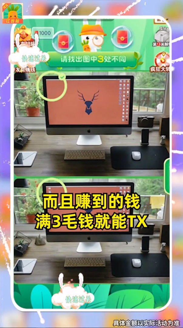 在找茬大侦探中,玩家只需成功通关即可领取0.3元大红包,奖励即时到账。游戏设置了丰厚的提现机制,玩家在10分钟内可以提现五次0.3元和两次0.5元的奖励,累计收益相当可观。提现过程简单快捷,无需复杂操作,让玩家能够轻松获得收益。游戏还会不定期推出各种福利活动,让玩家获得更多提现机会,真正实现娱乐赚钱两不误。