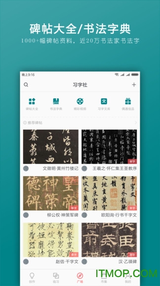 秉承"学而时习之"的理念,习字社为广大书法爱好者提供了丰富多样的学习资源。平台集成了碑帖大全、书法字典、教学视频、习字文库、文房市集、创作分享与临习交流社区等七大核心功能模块,全方位满足不同层次用户的学习需求。无论你是书法初学者还是资深爱好者,都能在这里找到适合自己的学习内容和交流空间。