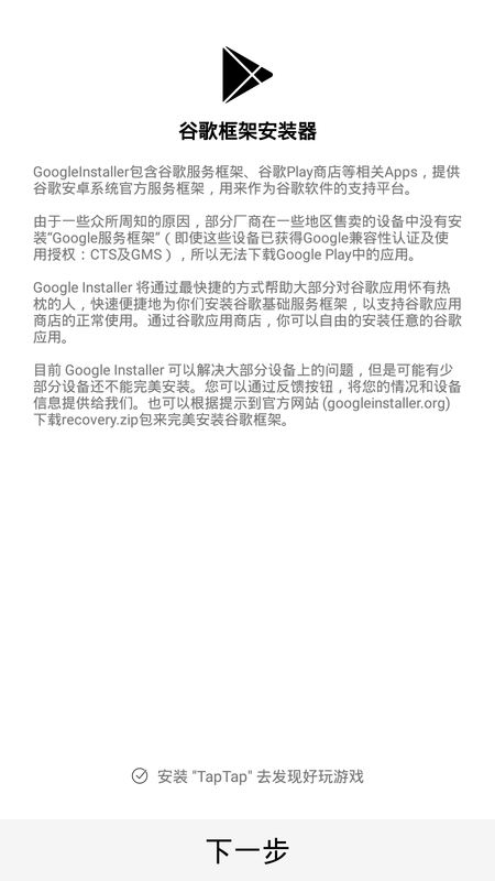 全新版本的谷歌安装器taptap版已正式上线,优化了安装流程,提升了兼容性,为用户带来更加稳定、高效的谷歌服务安装体验。无论是游戏玩家还是日常用户,都能通过这款软件轻松解决谷歌服务框架的安装问题,享受更丰富的Android应用生态。