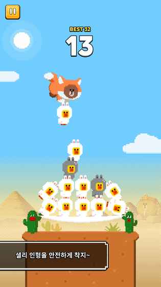 莎莉鸡之塔SallyTower是一款类似像素鸟操作的休闲游戏,主角是萌萌的布朗熊,我们要操纵布朗熊堆叠sally娃娃,堆得越高分数越高。游戏场景设置在广袤的荒漠地带,在酷烈的阳光下,布朗熊需要你的帮助来建造一座又高又坚固的莎莉塔。游戏操作简单但极具挑战性,需要玩家掌握精准的时机和力度,同时还要注意堆叠的顺序和平衡性。随着游戏的进行,难度会逐渐增加,考验玩家的耐心和技巧。