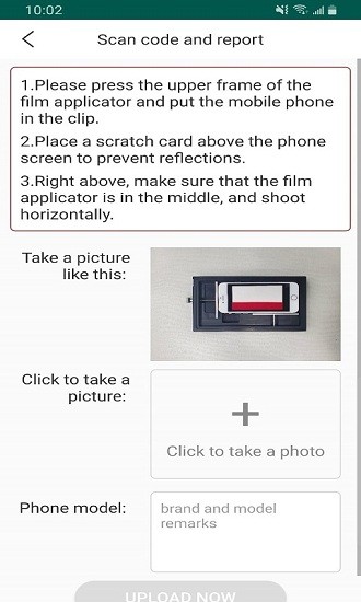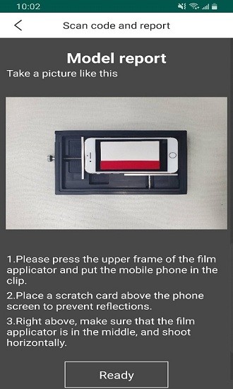将刮刮卡放在电话屏幕上方,以防止反射。建议使用专业防反射工具,以获得更好的贴膜效果。