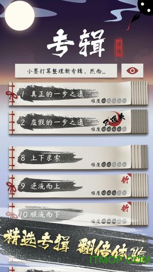 无论你是解谜游戏爱好者,还是水墨艺术的欣赏者,亦或是想要寻找一款轻松治愈的游戏来放松心情,《墨盘》都将带给你难忘的游戏体验。现在就加入这个神奇的墨色世界,开启你的解谜冒险吧!