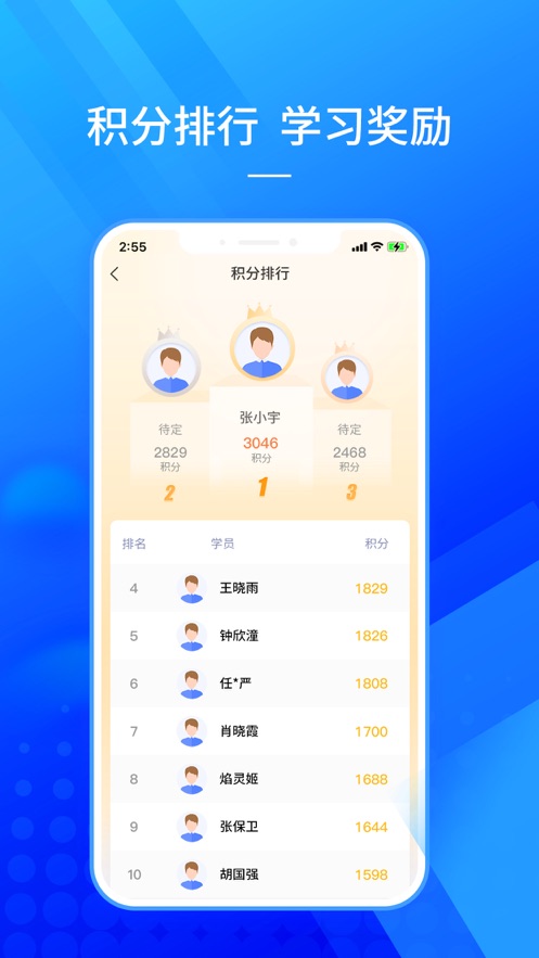 积分排行,学习奖励:创新性地引入积分激励机制,通过完成学习任务获取积分,参与排行榜比拼,优秀学员可获得实物奖励或培训证书,激发学习积极性。