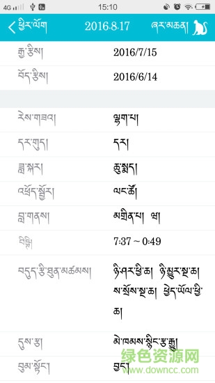 本视图主要显示某天的藏历信息,如星期、星座、五行、吉凶等信息,按其中的"海螺"按钮可朗读该页的信息。视图中最大的图片每天一换,精选藏族传统图案和风景照片,让用户在查询信息的同时欣赏藏族艺术。