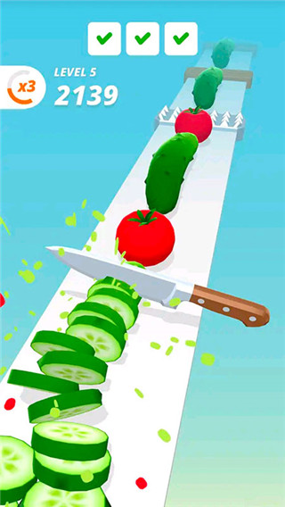 游戏拥有海量精心设计的关卡,每个关卡都带来全新挑战,还有数十种造型独特的刀具等待玩家解锁收集。清新亮丽的画面场景采用高饱和度色彩搭配,配合流畅的动画效果,为玩家带来赏心悦目的视觉享受。简单直观的操作方式让任何玩家都能快速上手,但想要精通却需要不断练习,这种易上手难精通的设计让游戏充满挑战性。每次成功通关都能获得丰厚金币奖励,用于解锁更多酷炫的刀具外观和特效升级。整体氛围轻松愉悦,恰到好处的音效和背景音乐让玩家在紧张刺激的切割过程中也能保持放松状态。