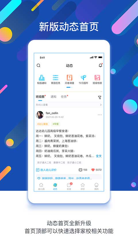 全新上线的发现板块包含育儿智库、亲子游戏库等实用资源,每周更新专家指导视频和互动教案。精确的信息检索功能支持关键词模糊匹配和分类筛选,确保重要通知的触达率达到100%。采用萌趣动物形象的UI设计,通过颜色编码区分消息类型,大幅提升操作便捷性。实时通讯模块支持文字、语音、视频多种沟通方式,请假审批流程最快可在30秒内完成。智能生成的成长档案自动归类照片视频素材,支持一键导出精美电子相册。
