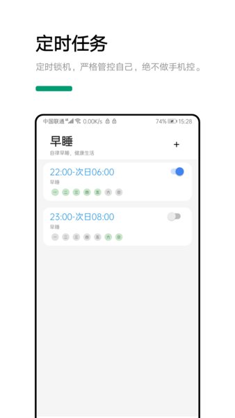 操作简单便捷:界面设计简洁明了,功能操作简单,随时随地都能使用,轻松养成自律生活。